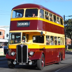 In winter, 1948/1949, a batch of four Strachan low bridge bodied Daimler CVD6s, W.H. Gash & Son’s first new double decker buses joined the fleet. In 1958-1960, the original four received new Massey high bridge bodies with platform doors; this was in response to a low bridge at Saxondale being modified to allow full height double deckers.