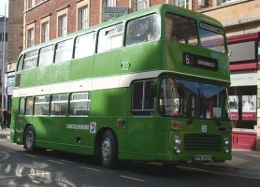 This Leyland TD1 introduced the double decker to many routes for the first time, as a result of pioneering work by Leyland Motors on a low height design to produce a ‘lowbridge’ body incorporating a sunken gangway upstairs. Lincoln Corporation took delivery of the very first production model as its fleet number 24, FE 9755 in 19277.