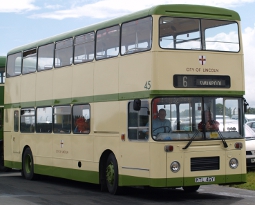 New as fleet no. 45, this was one of the last standard ‘bus’ double deckers purchased by Lincoln City Transport (LCT. It was fitted with an electronic dot matrix destination display and was painted into a special livery for the ‘Birchwood Flyer’ limited stop service. In 1993, it was renumbered to 645 following the acquisition of LCT by Lincolnshire Road Car, at which time the electronic display was replaced by standard destination blinds.